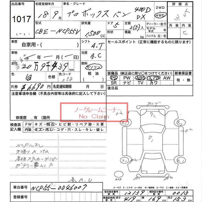TOYOTA PROBOX 4WD DX - лот 1017