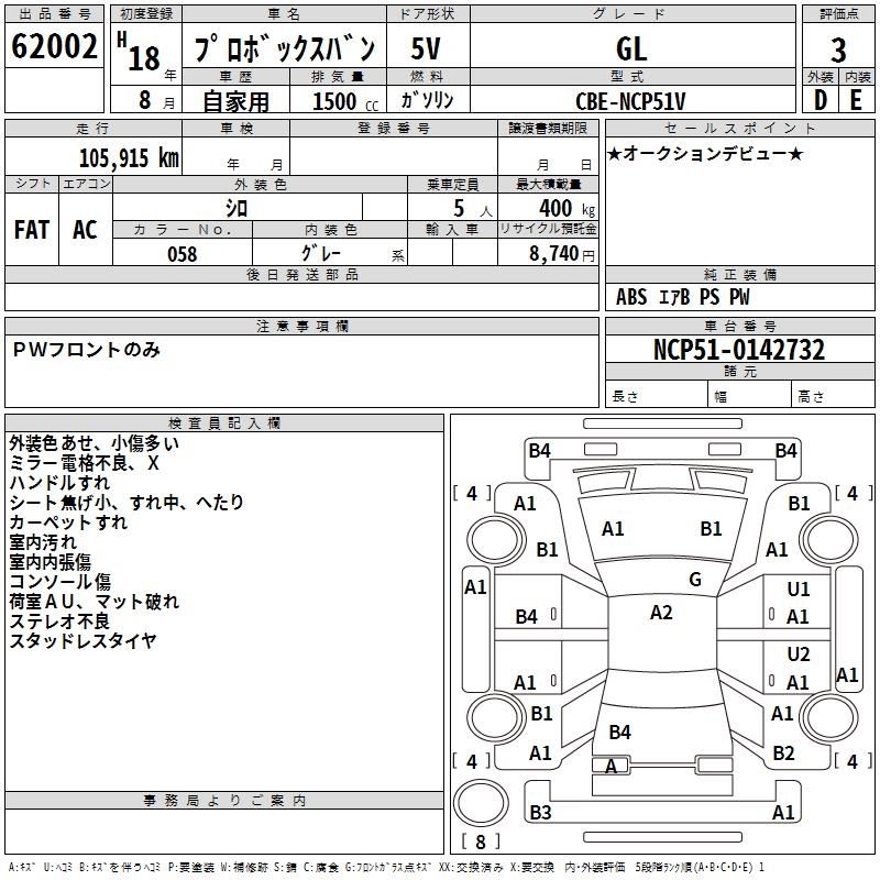 TOYOTA PROBOX GL - лот 62002