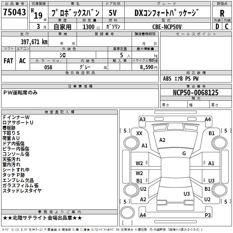 TOYOTA PROBOX DX COMFORT PACKAGE - лот 75043