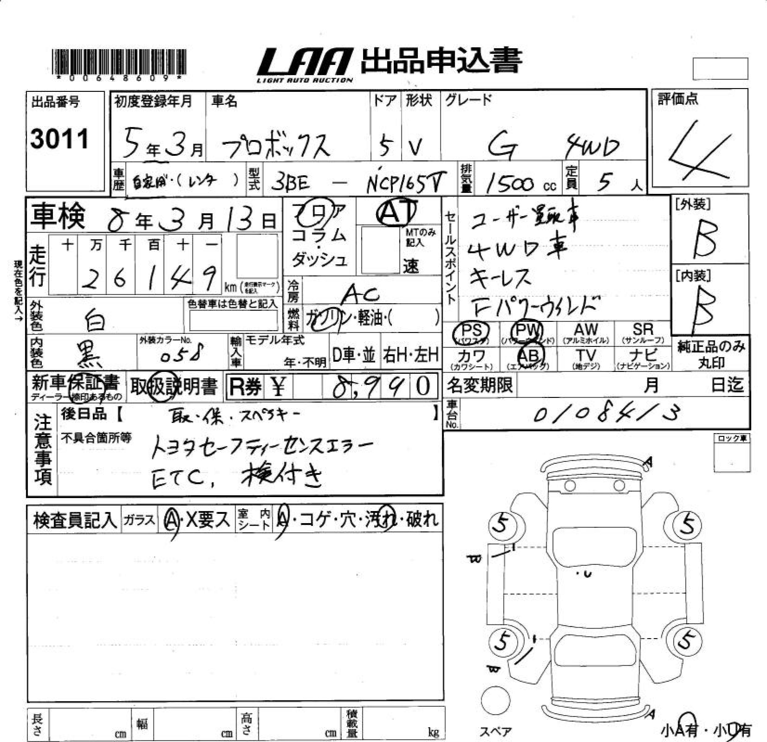 TOYOTA PROBOX G 4WD - лот 3011