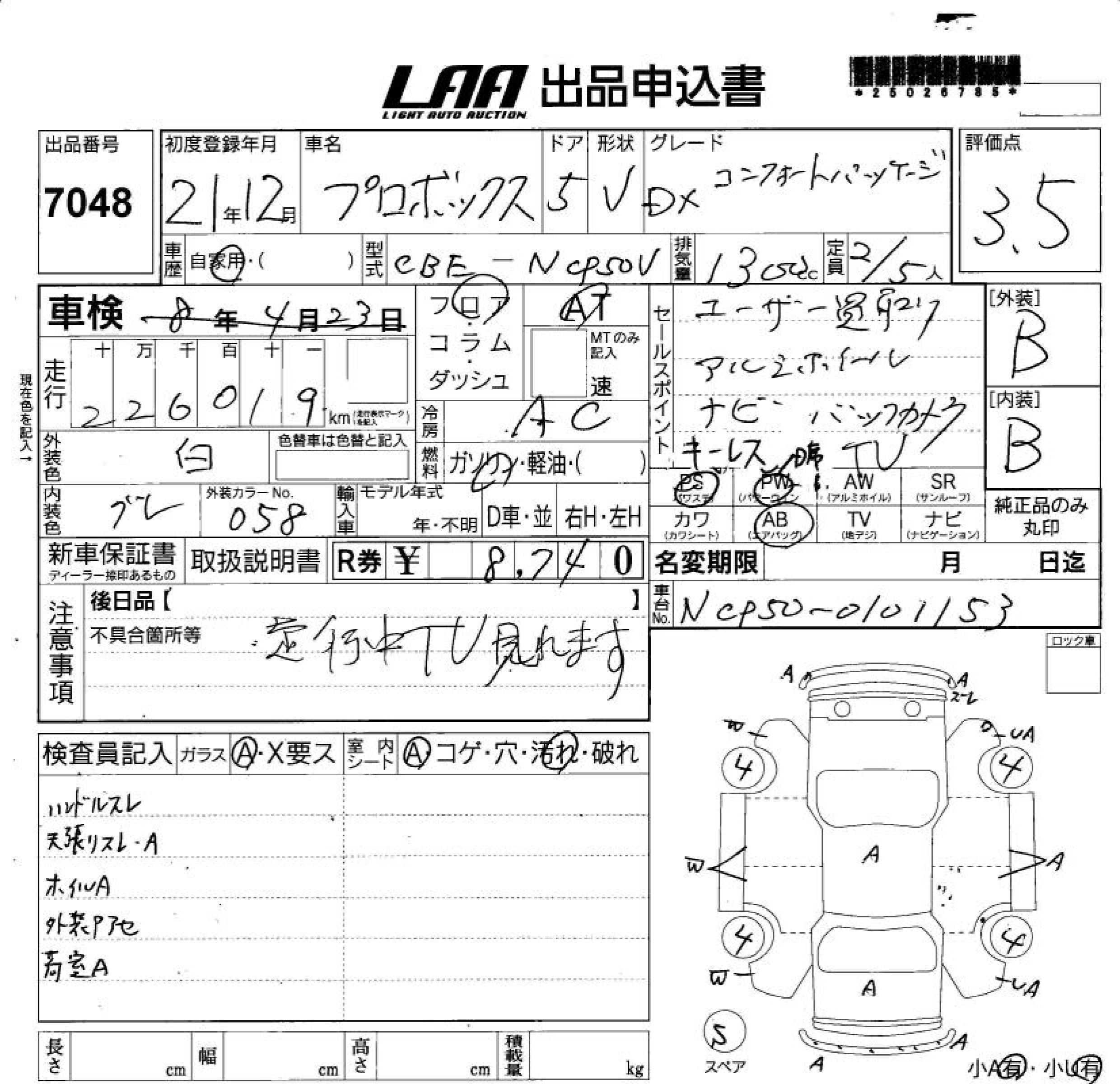 TOYOTA PROBOX DX COMFORT PACKAGE - лот 7048