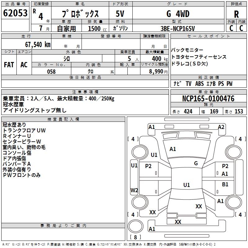 TOYOTA PROBOX G 4WD - лот 62053