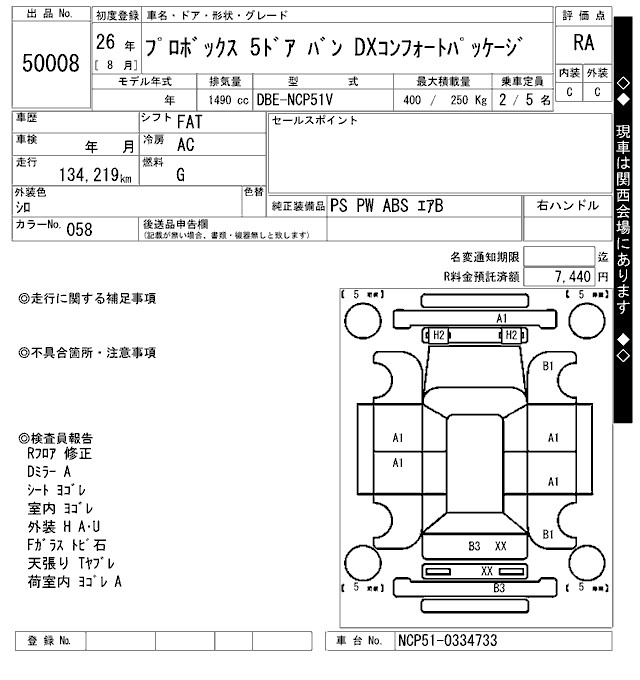 TOYOTA PROBOX VAN - лот 50008