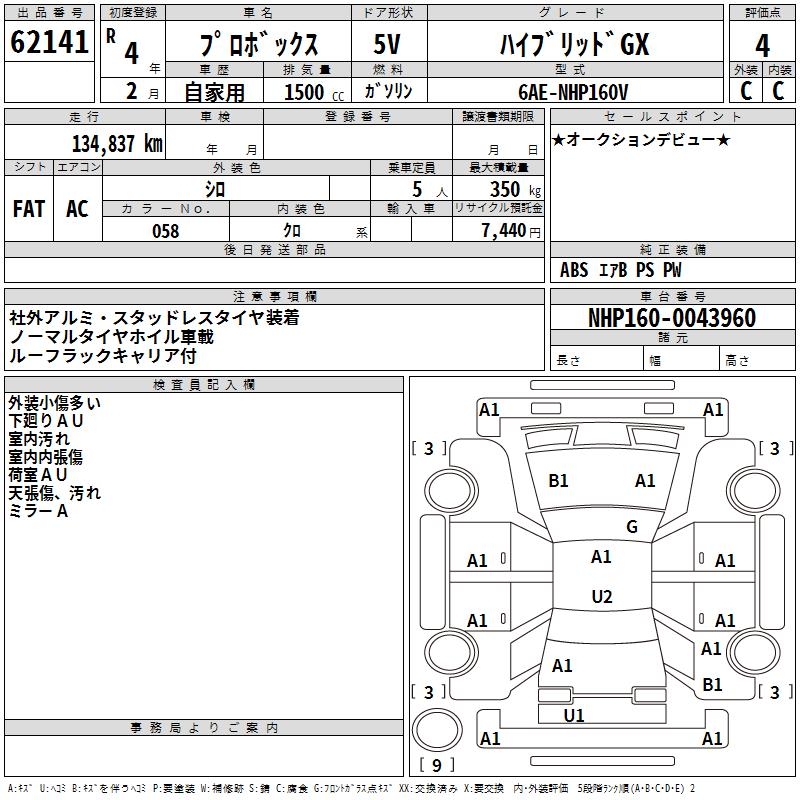 TOYOTA PROBOX HYBRID GX - лот 62141