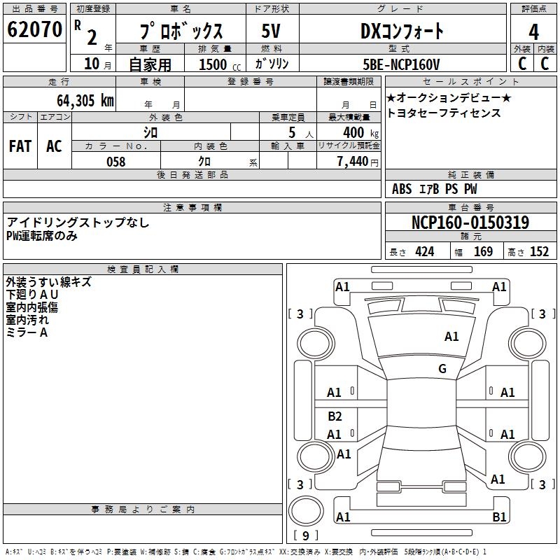 TOYOTA PROBOX DX COMFORT - лот 62070