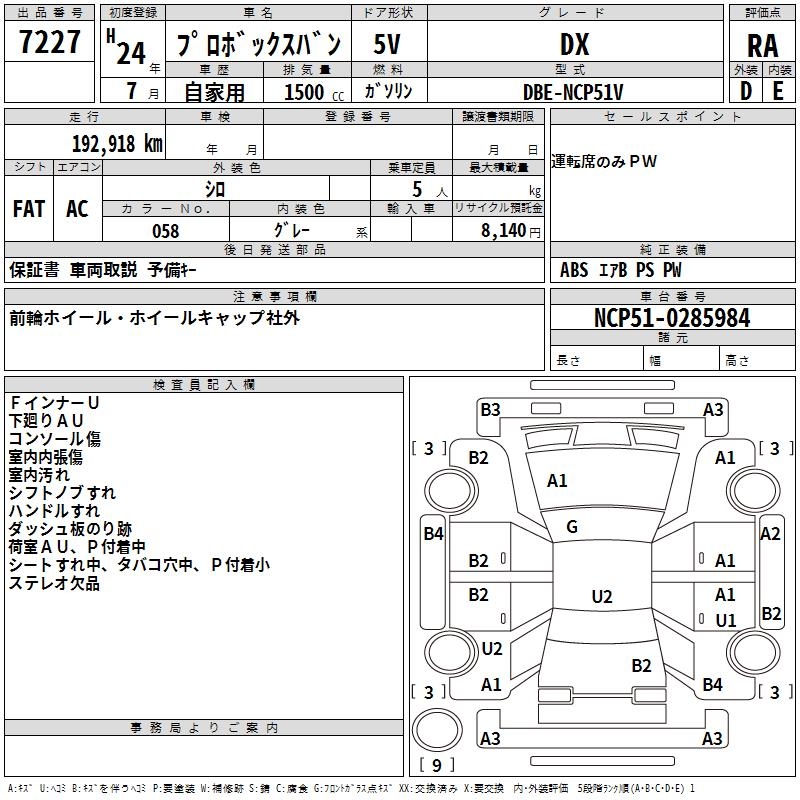 TOYOTA PROBOX DX - лот 7227