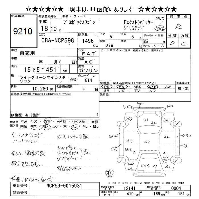 TOYOTA PROBOX 4WD F EXTRA PACKAGE LTD - лот 9210