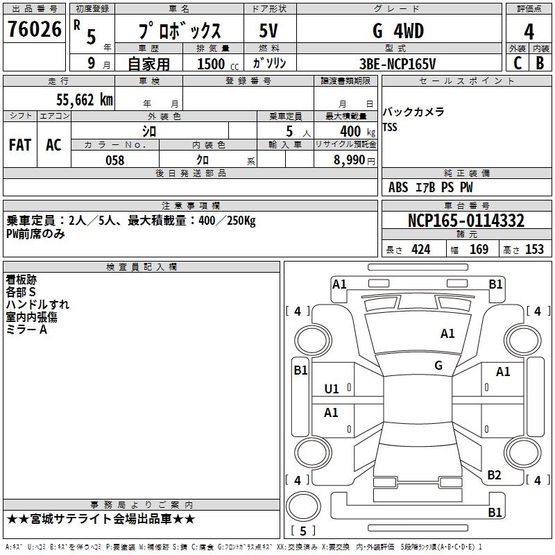 TOYOTA PROBOX G 4WD - лот 76026