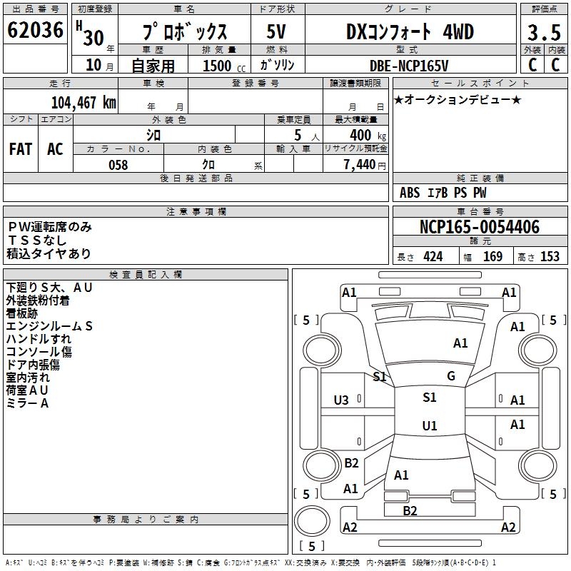 TOYOTA PROBOX DX COMFORT 4WD - лот 62036