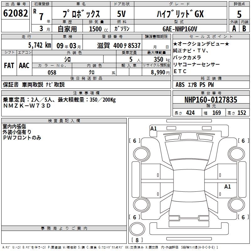 TOYOTA PROBOX HYBRID GX - лот 62082