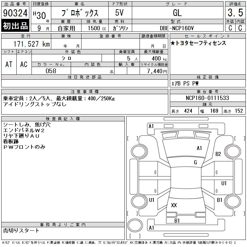 TOYOTA PROBOX GL - лот 90324