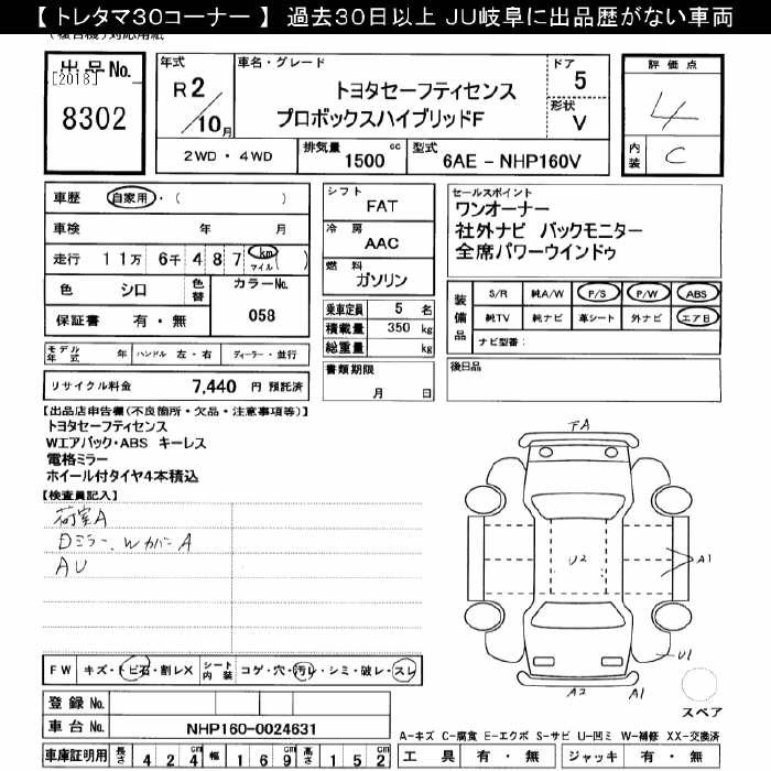 TOYOTA PROBOX HYBRID F TOYOTA SAFETY SENS - лот 8302