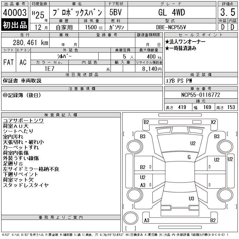 TOYOTA PROBOX GL 4WD - лот 40003
