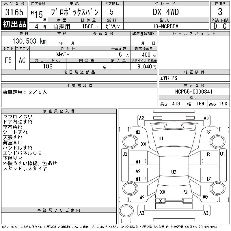 TOYOTA PROBOX DX 4WD - лот 3165