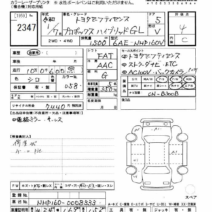 TOYOTA PROBOX hybrid GL Toyota safety ... - лот 2347