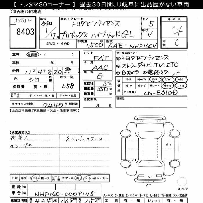 TOYOTA PROBOX hybrid GL Toyota safety ... - лот 8403