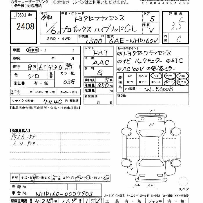 TOYOTA PROBOX hybrid GL Toyota safety ... - лот 2408