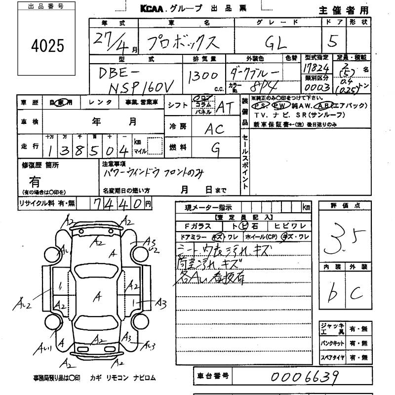 TOYOTA PROBOX - лот 4025