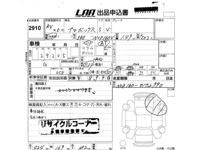 TOYOTA PROBOX - лот 2910