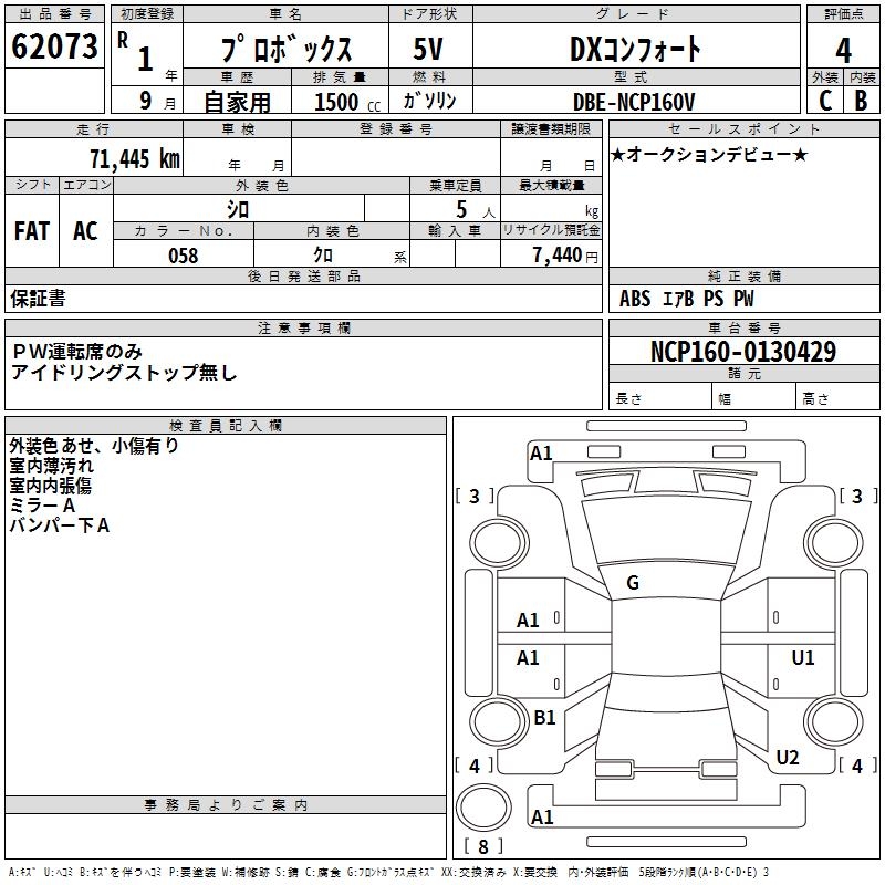 TOYOTA PROBOX - лот 62073