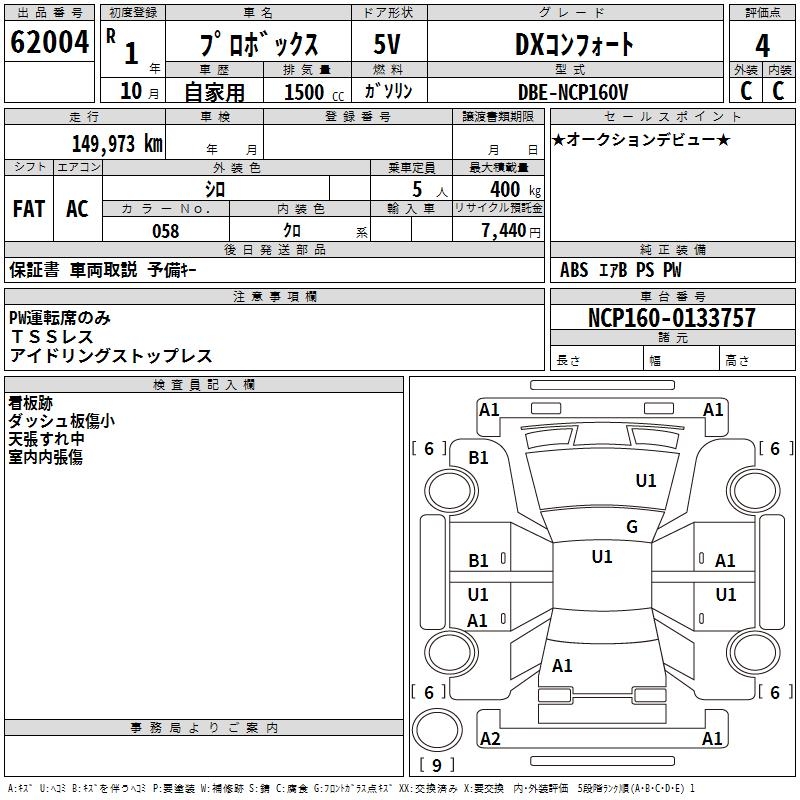 TOYOTA PROBOX - лот 62004