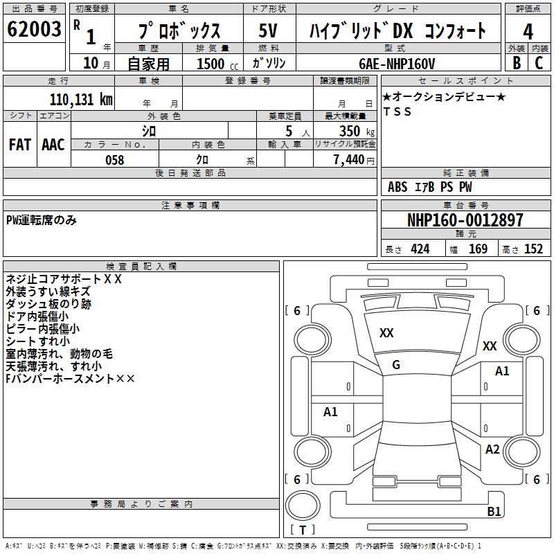 TOYOTA PROBOX - лот 62003