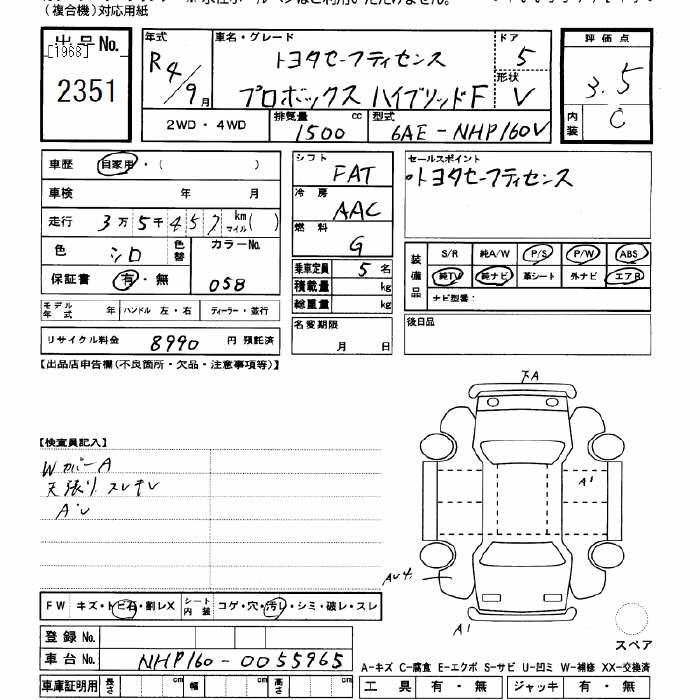 TOYOTA PROBOX - лот 2351