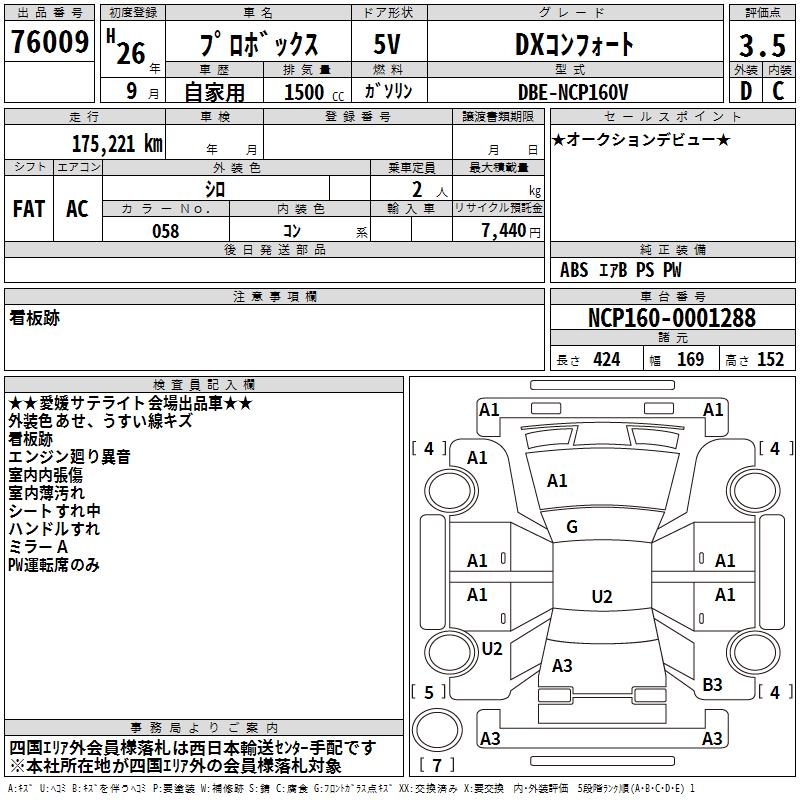 TOYOTA PROBOX - лот 76009