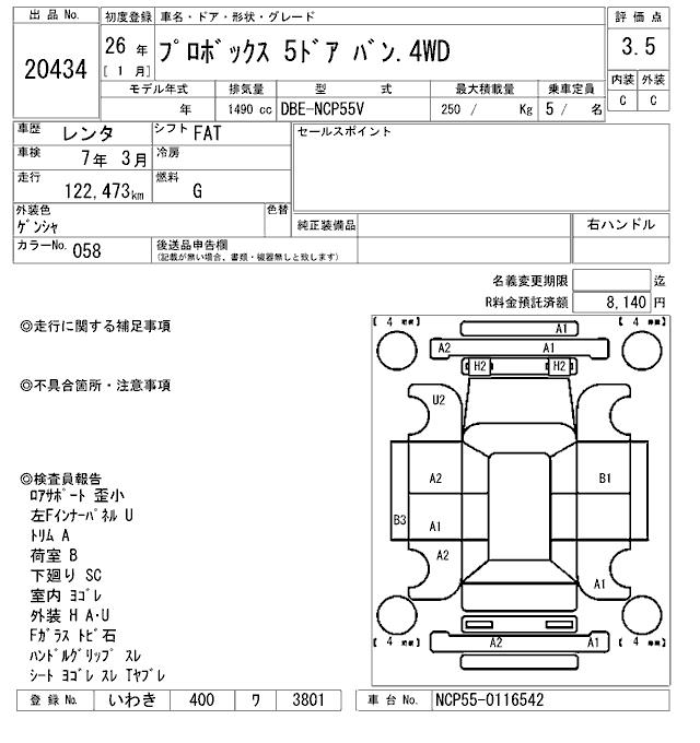 TOYOTA PROBOX - лот 20434