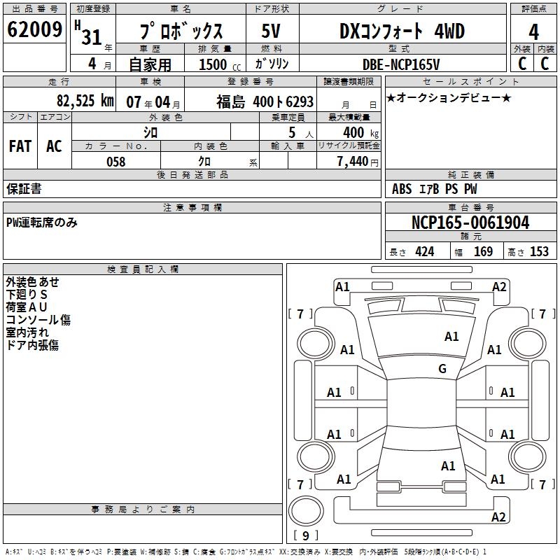 TOYOTA PROBOX - лот 62009