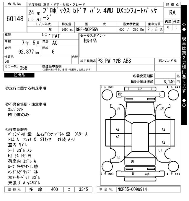 TOYOTA PROBOX - лот 60148