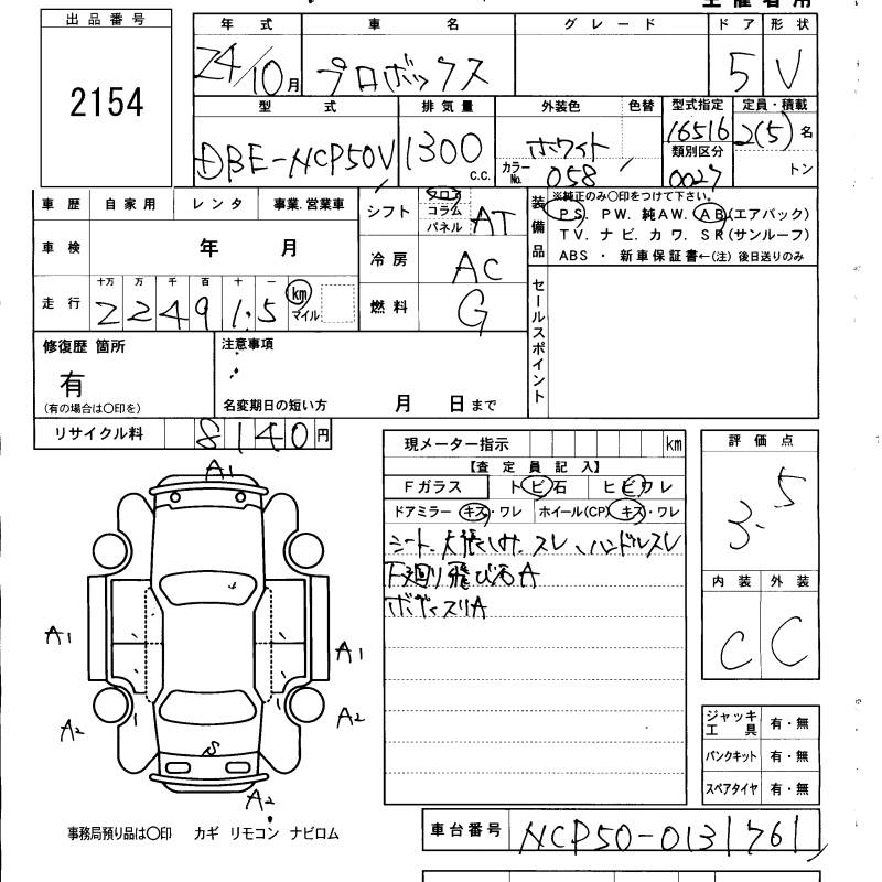 TOYOTA PROBOX - лот 2154