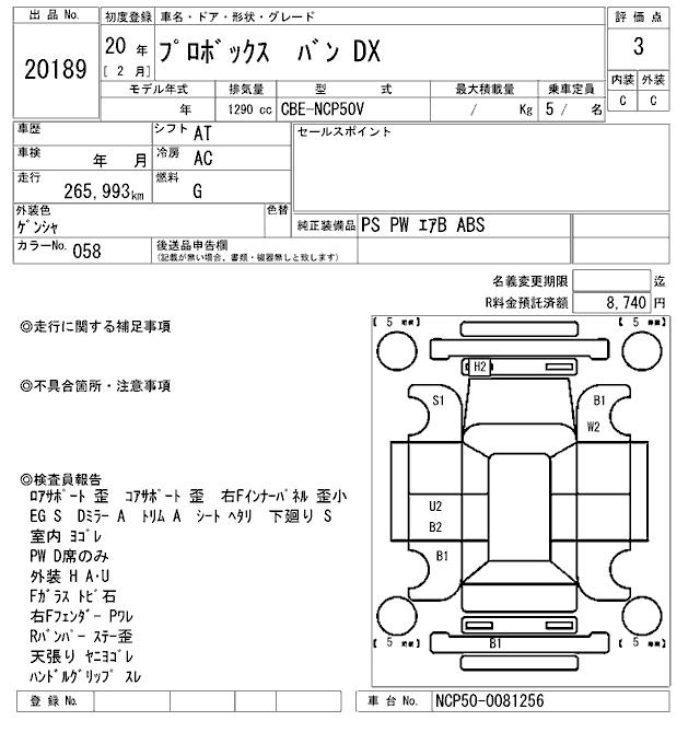 TOYOTA PROBOX - лот 20189