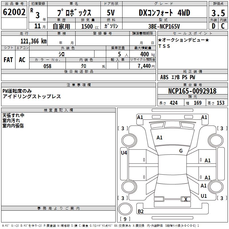 TOYOTA PROBOX - лот 62002