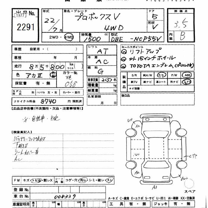 TOYOTA PROBOX - лот 2291