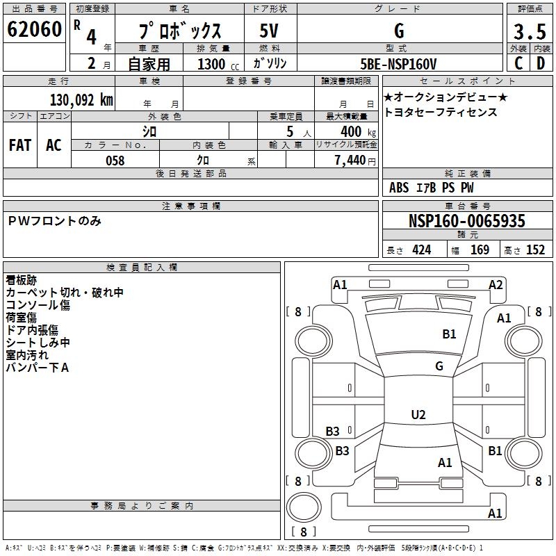 TOYOTA PROBOX - лот 62060