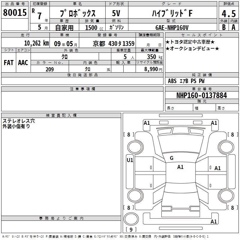 TOYOTA PROBOX - лот 80015