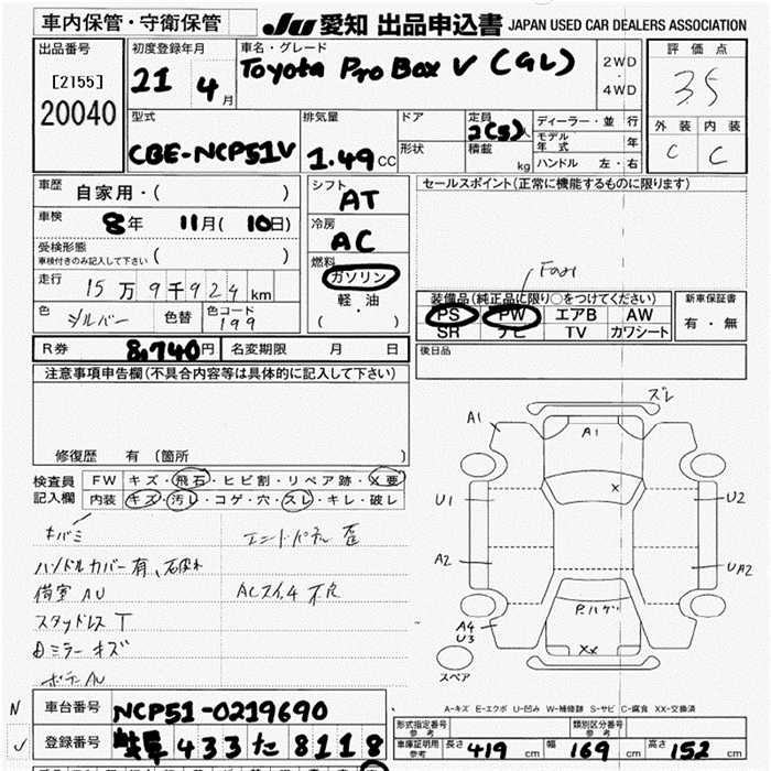 TOYOTA PROBOX - лот 20040