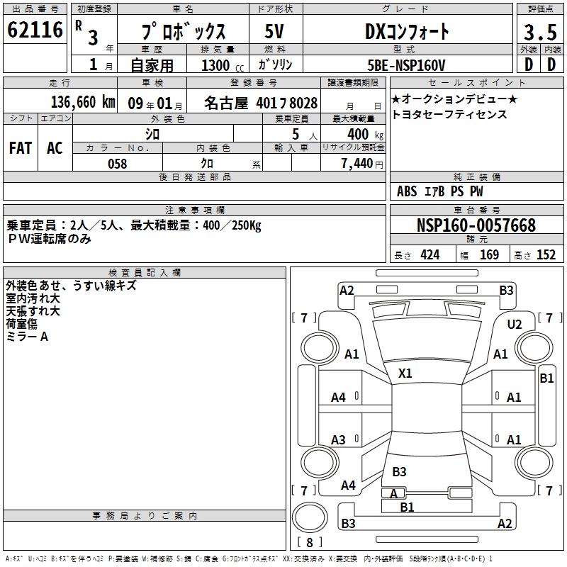 TOYOTA PROBOX - лот 62116