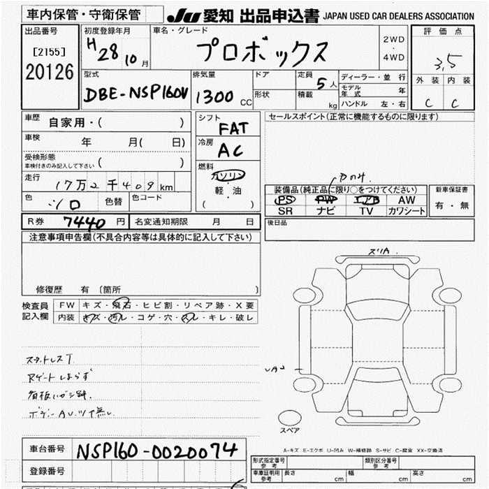 TOYOTA PROBOX - лот 20126