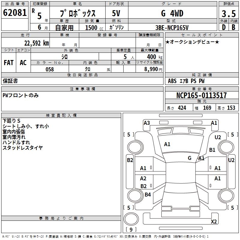 TOYOTA PROBOX - лот 62081