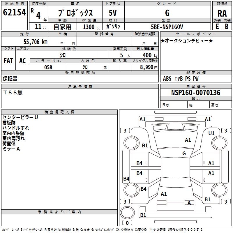 - Кузов: NSP160V