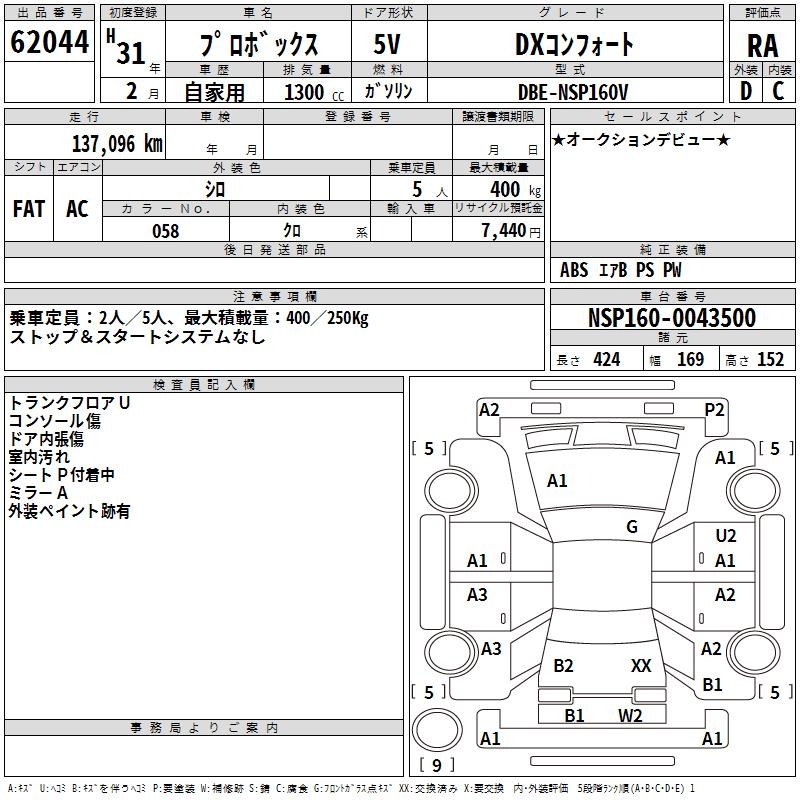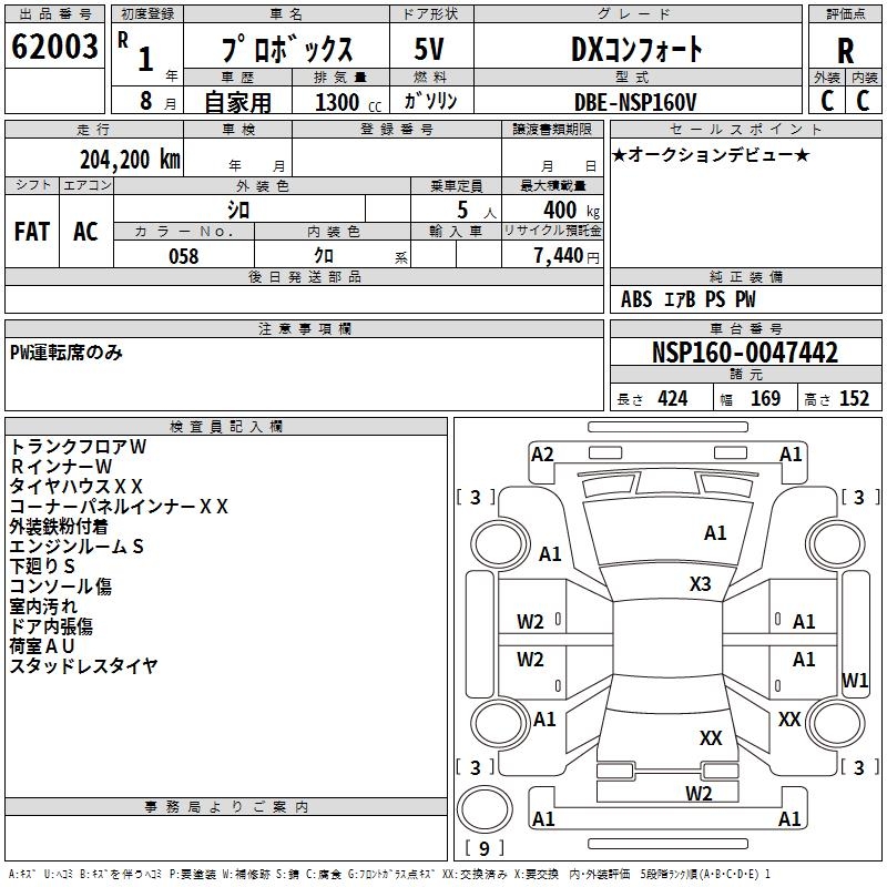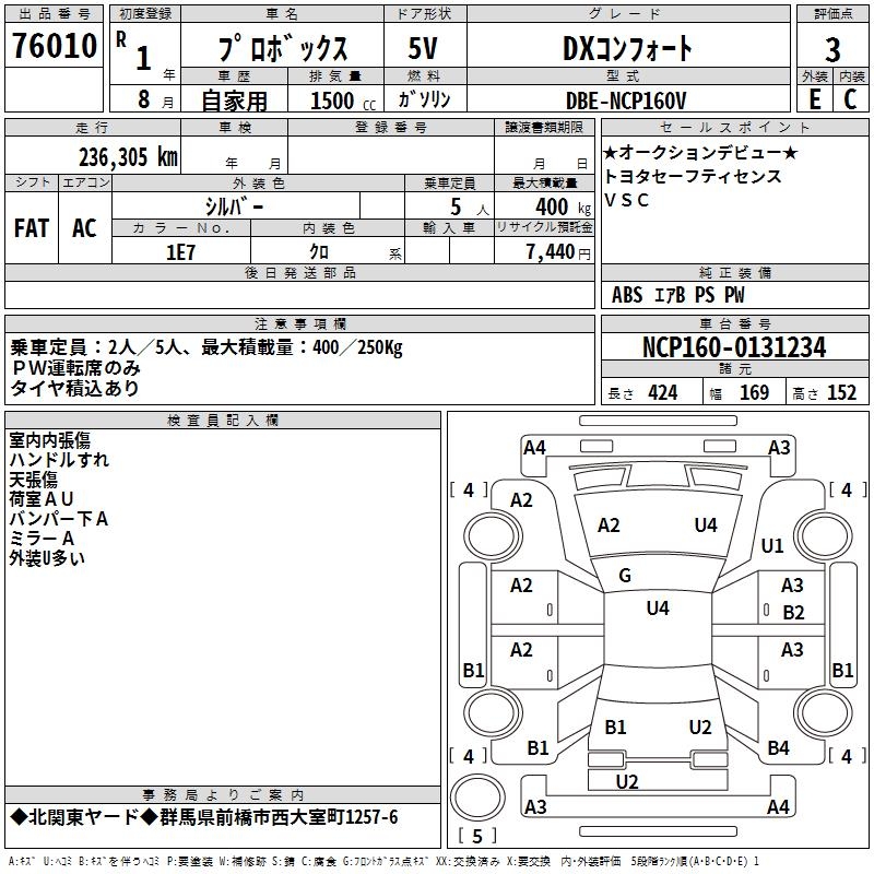 - Кузов: NSP160V