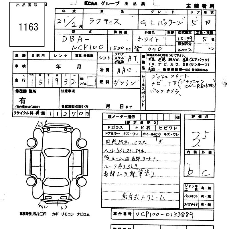 TOYOTA RACTIS G L PACKAGE - лот 1163