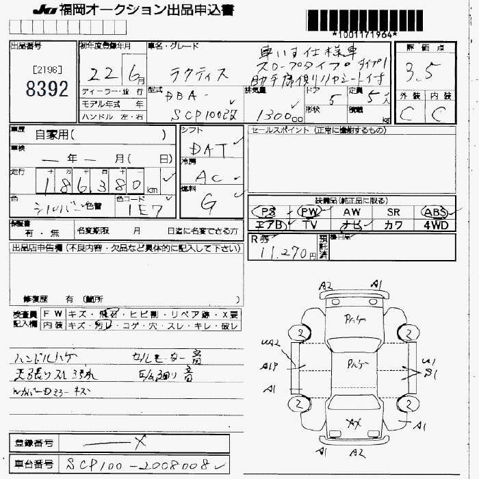 TOYOTA RACTIS KRU MY S USE CAR SLOPE TYPE JOSHU SEAT GAWA - лот 8392
