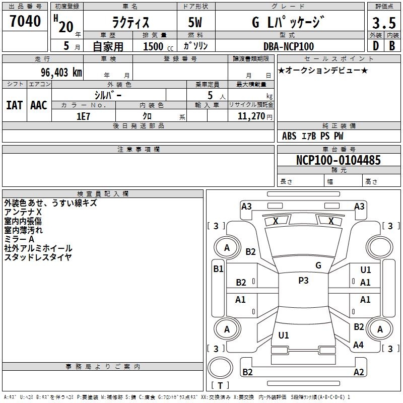 TOYOTA RACTIS G L PACKAGE - лот 7040