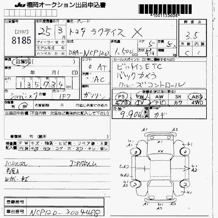 TOYOTA RACTIS X - лот 8185