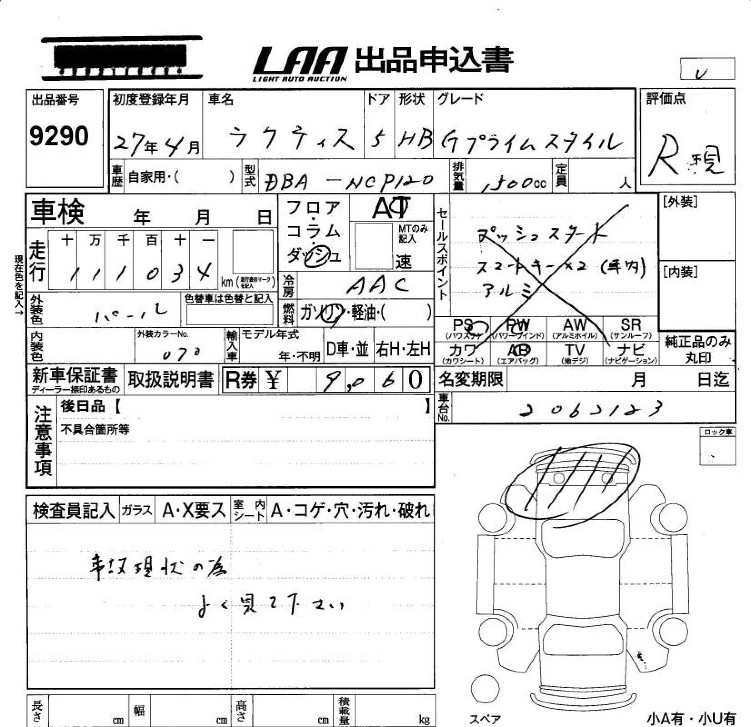 TOYOTA RACTIS G PRIME STYLE - лот 9290