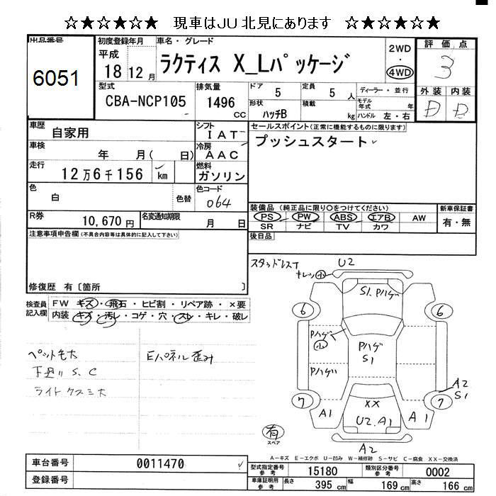TOYOTA RACTIS 4WD X L PACKAGE - лот 6051