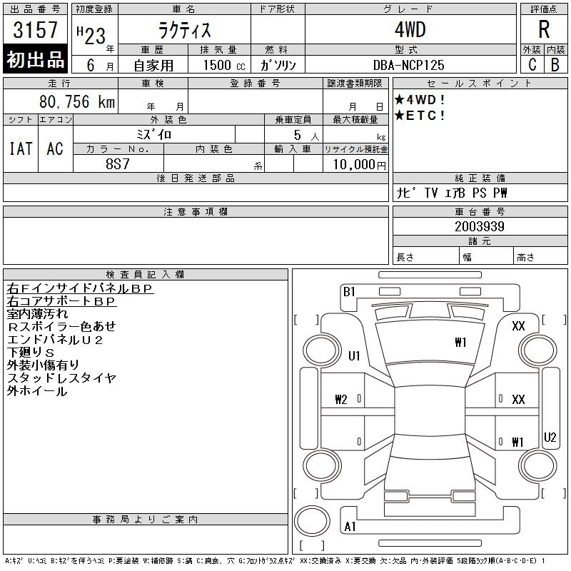 TOYOTA RACTIS 4WD - лот 3157